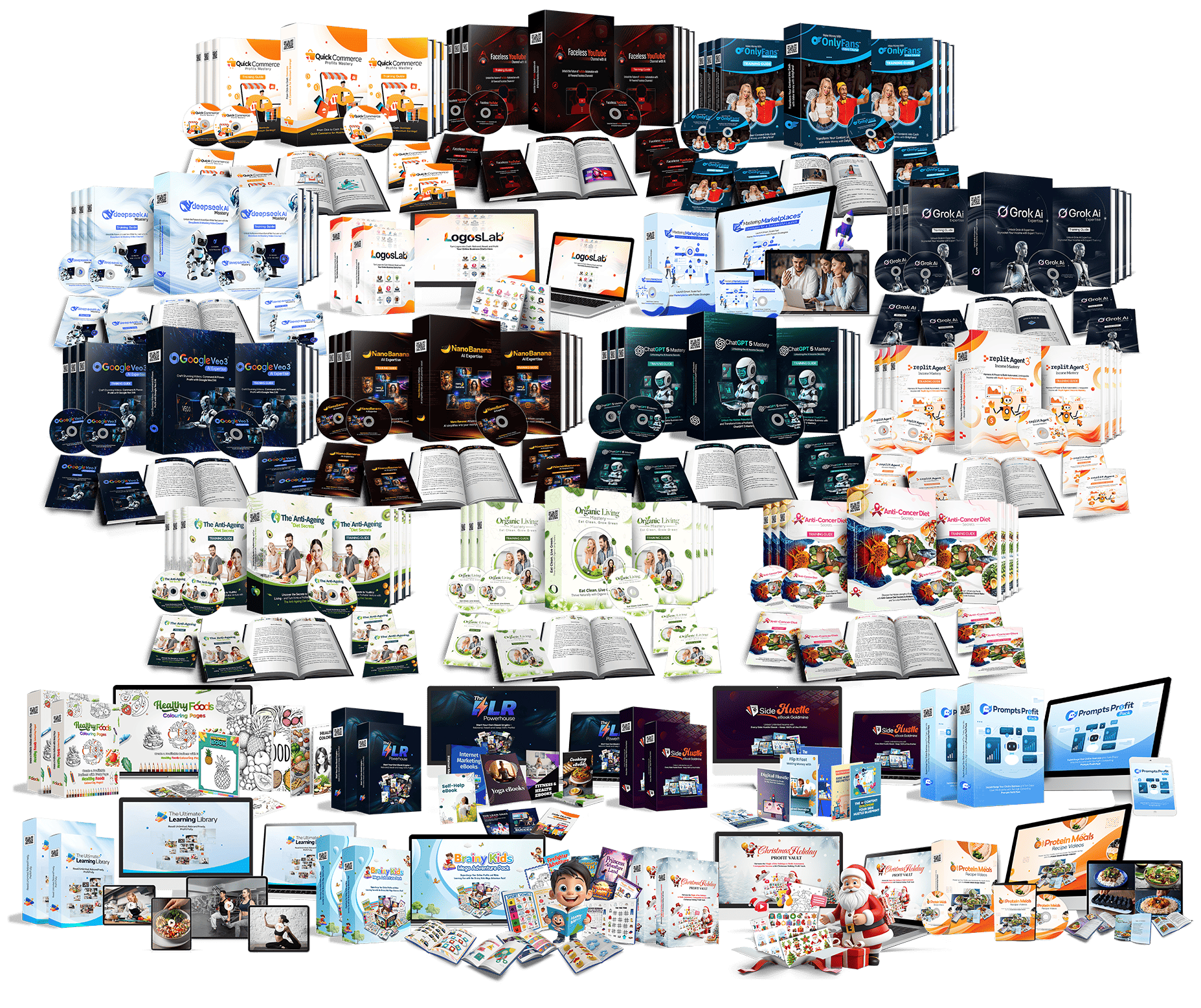 You receive a comprehensive package of Christmas themed images templates recipes videos music and more—all of which are completed for you